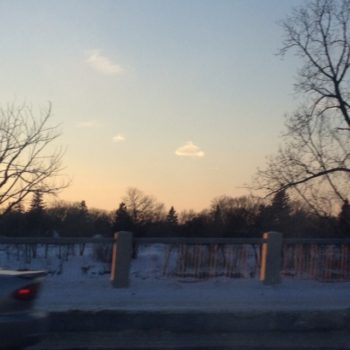 Our first game was scheduled for Friday evening, the first day. We decided to travel together to the Forks as we were not sure about how hard it would be to get parking. One of our team members picked us up and as we traveled down St. Mary’s towards the Forks, it was just at the beginning of dusk. I was sitting in the back seat of the car beside the window looking out at the evening sky while we chatted about the curling and fun we always have! From my spot in the back seat, I glanced out the window and saw it!! I told my team members that we had a good omen in the sky….It was going to be a good night. There, in the evening sky, was a cloud….It was a cloud that was in the perfect shape of a curling rock….HANDLE AND ALL!! It was going to be a good weekend of curling!!