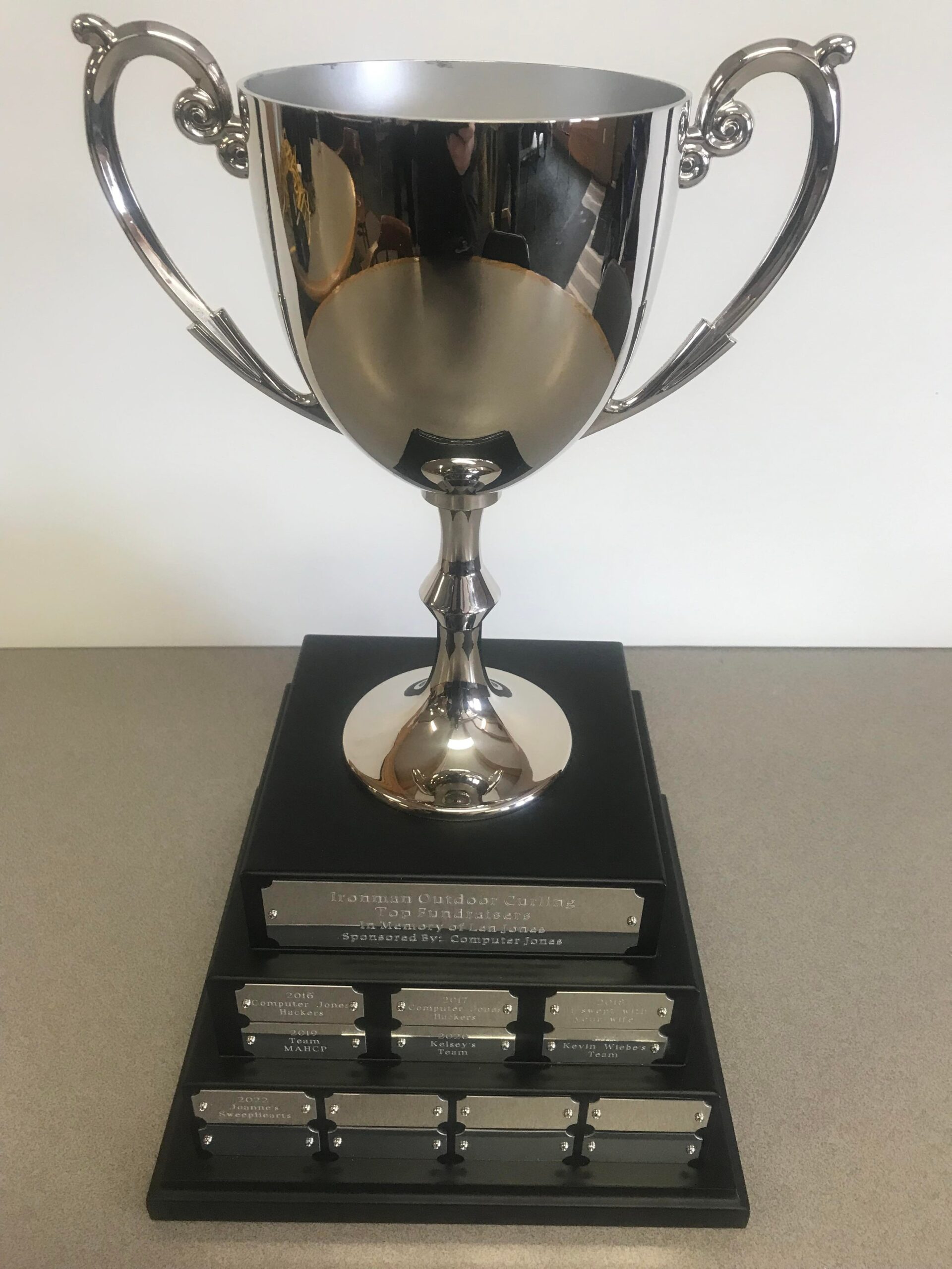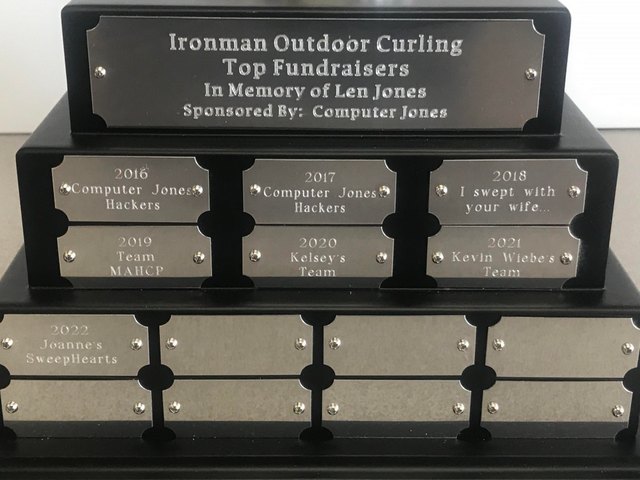 Did you also know: In 2023, Ironman Outdoor Curling also introduced the Top Fundraisers Trophy so the one team raising the most each year (by the start time of our closing ceremonies) will also be added to the trophy!
