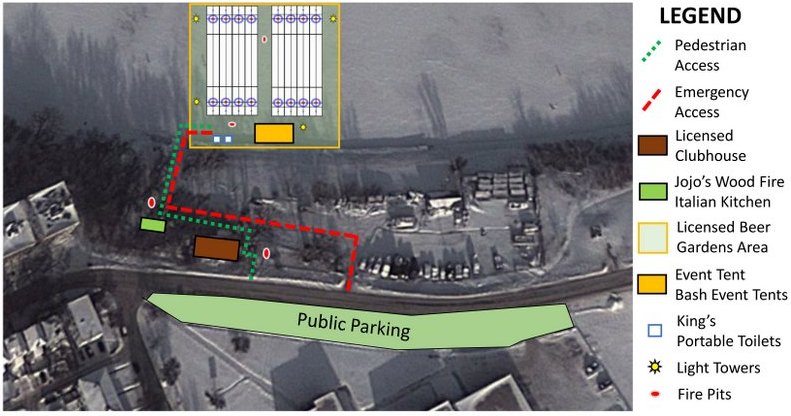 The information and registration table is located inside the Rowing Club, which is highlighted green in the figure above. All players are required to sign the event waiver prior to their first game, either online (preferred) or in person at the registration table. Show up early to finish your paperwork and to find your rink location out before your first game. It’s always best to have the waiver signed online in advance to avoid any delay.